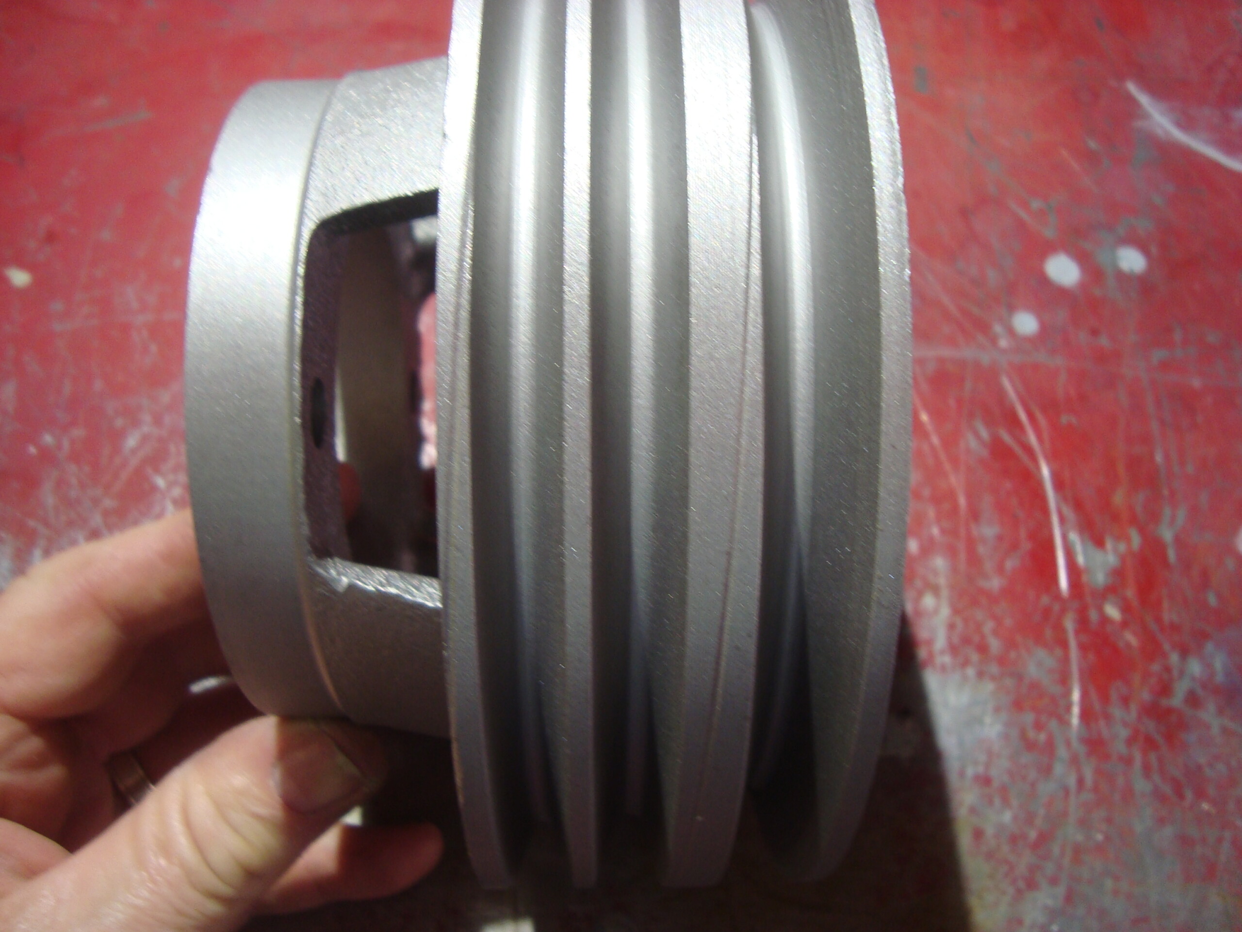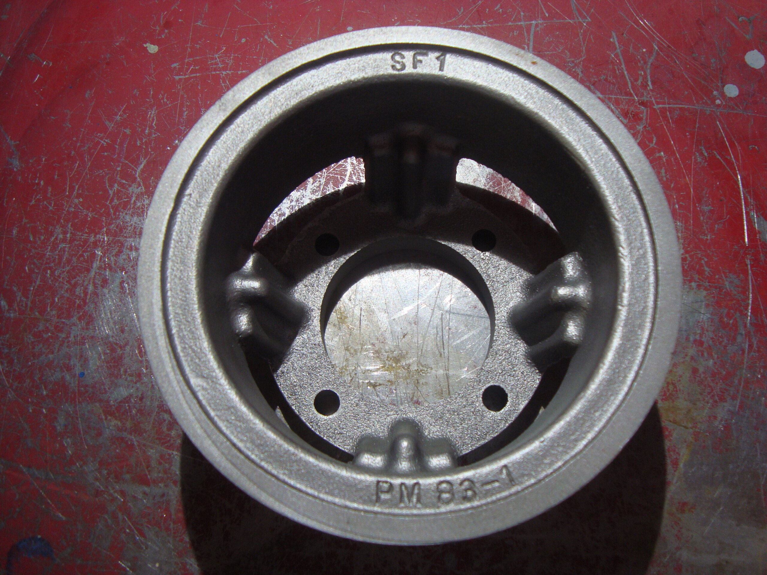 AMC 401, four bolt, three chev, cast iron pulley. A small piece is broke out of the inside chev, see pic’s.