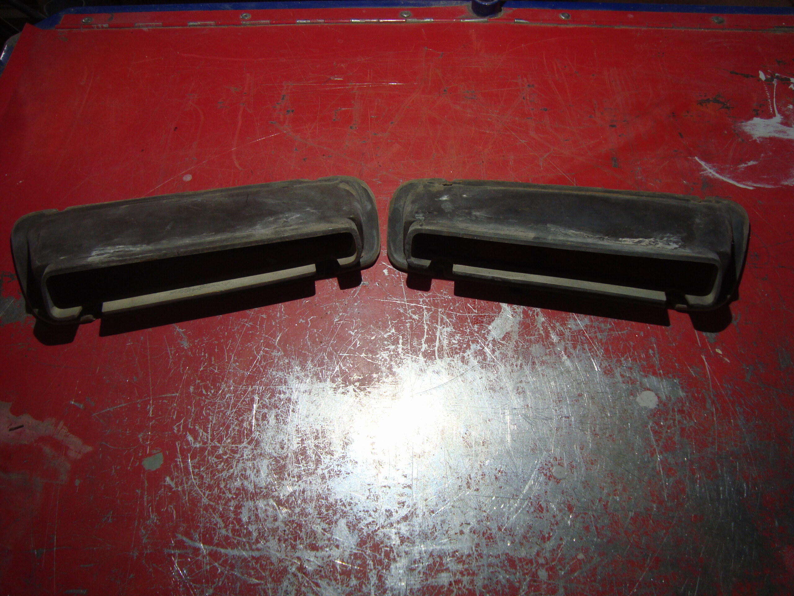 AMC AMX 1970 power blister hood scoop open inserts’. Mark Donahue, T/A, Go Pac. The spots that are brown, it looks to me some one has hit them with a sand blaster. So you will need to fill prime those spots and sand them to a finish and paint them. So they are being sold as for parts only. They are not broken.