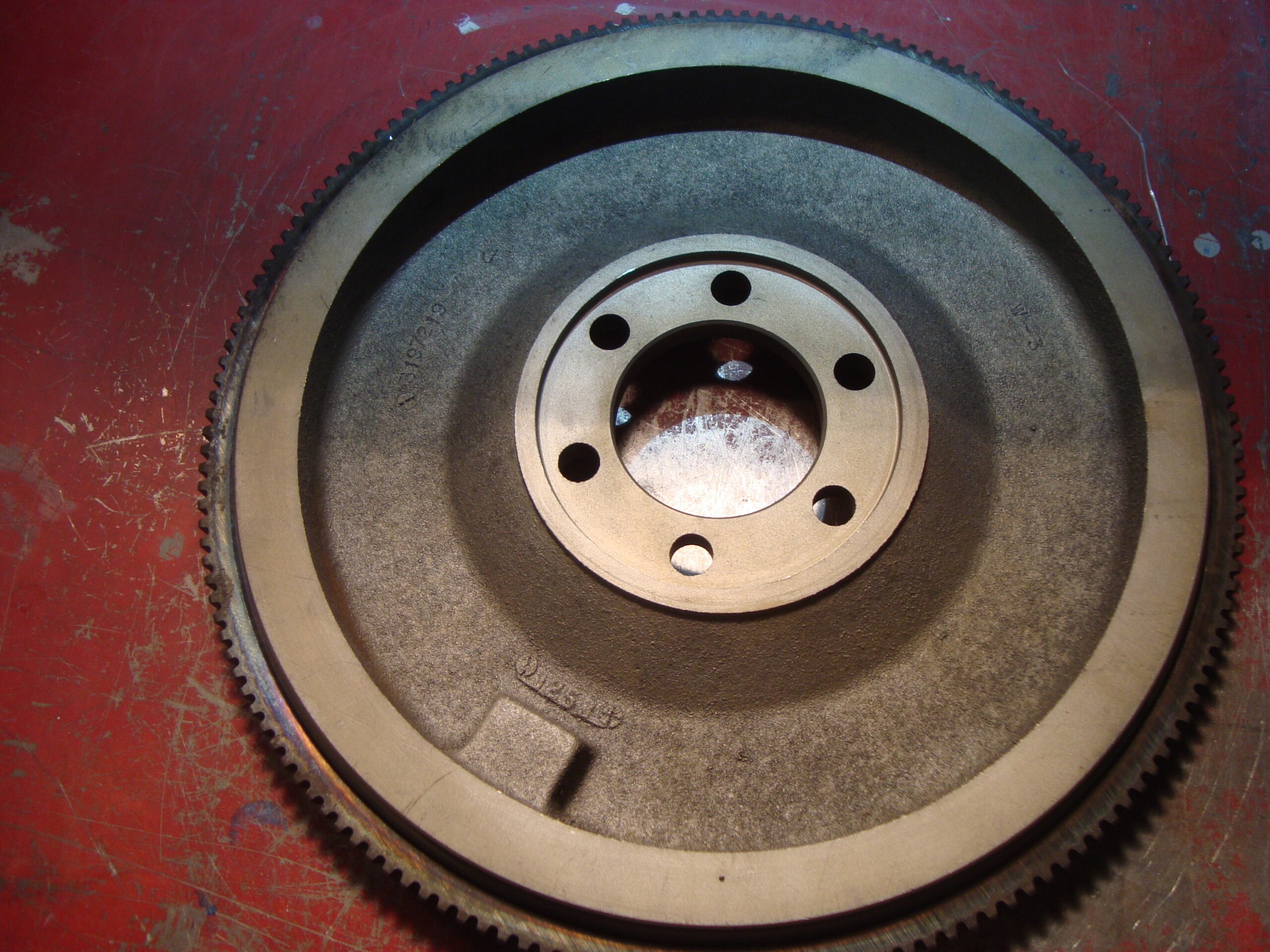 AMC AMX Javelin Jeep & others 360 flywheel. Clean, new ring gear, and surfaced, ready to roll. BUT! This was marked 304 from someone. So personally, I would not bolt this on unless you have your motor apart and are balancing the rotating mass. For the money you are saving by buying it with a new ring gear, and surfaced, your machine shop should be able to balance it to whatever AMC V-8 you need it for. If not I would get your motor out of there.