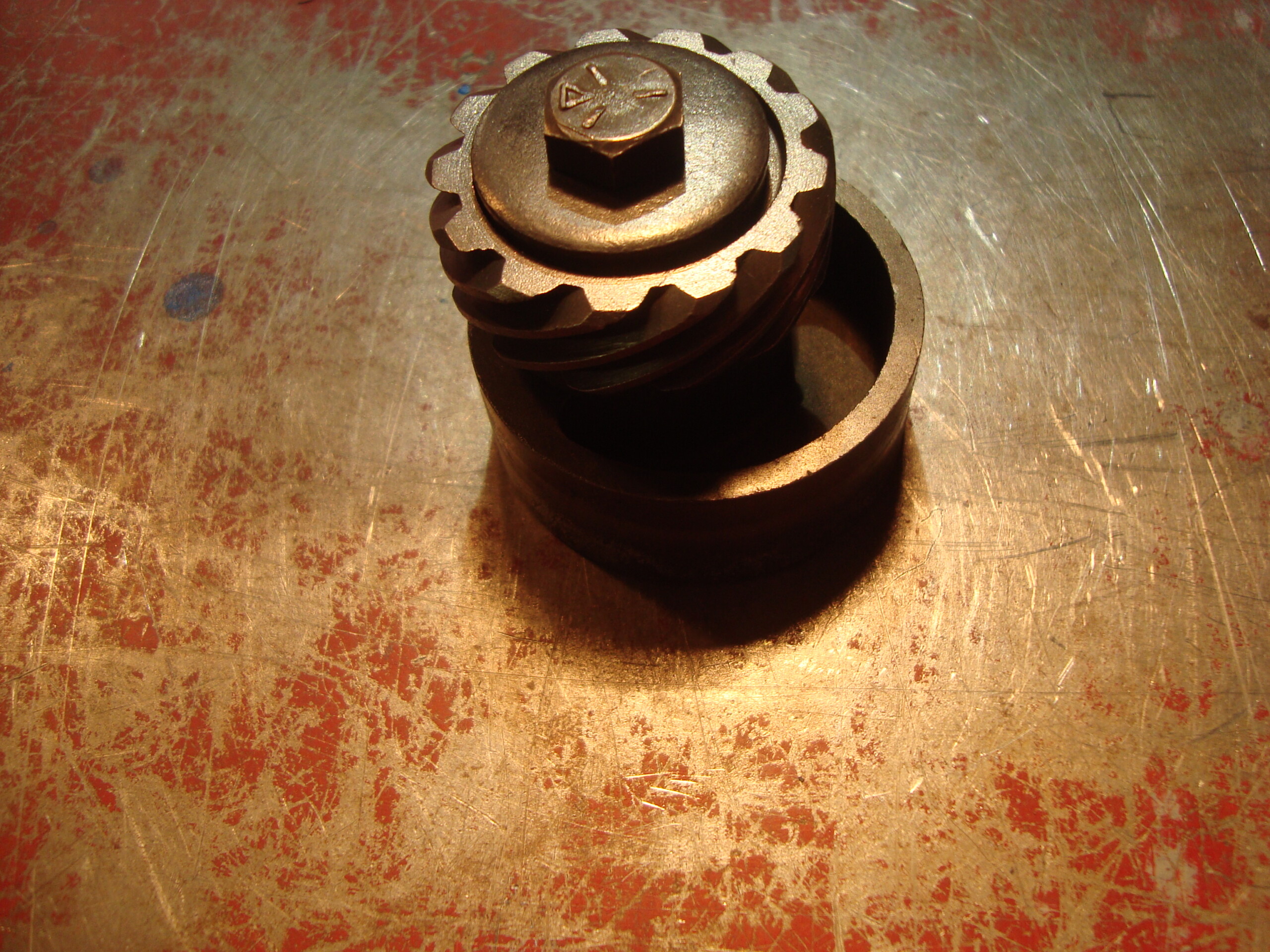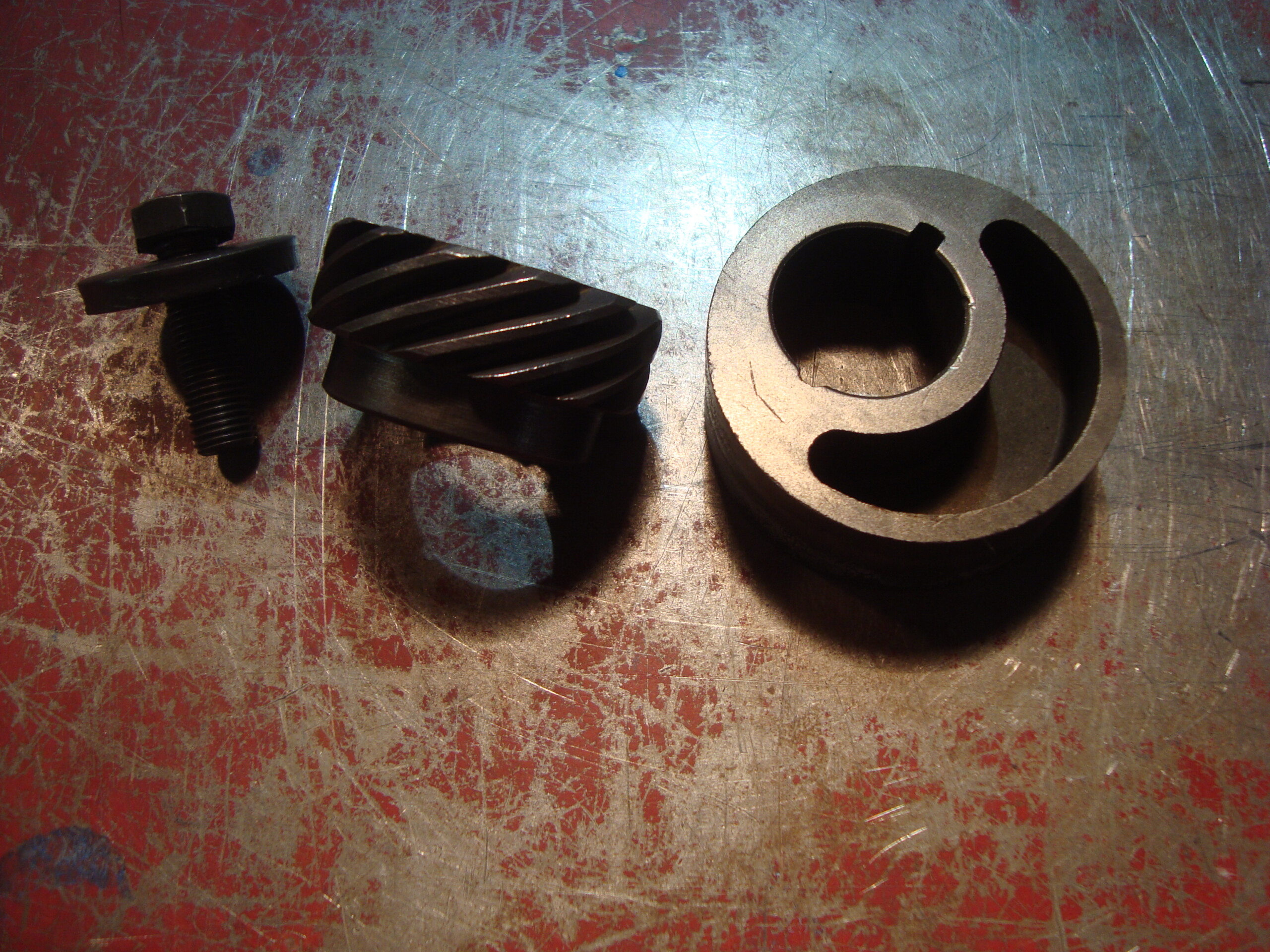 AMC AMX Javelin Jeep & others v-8 cam distributor drive gear, bolt, washer, & fuel pump eccentric. I would way rather use a seasoned, properly hardened to factory tolerances, and oil holes drilled in the factory locations than some of the after market parts that have marketed through the years. An AMC used, but proven part.