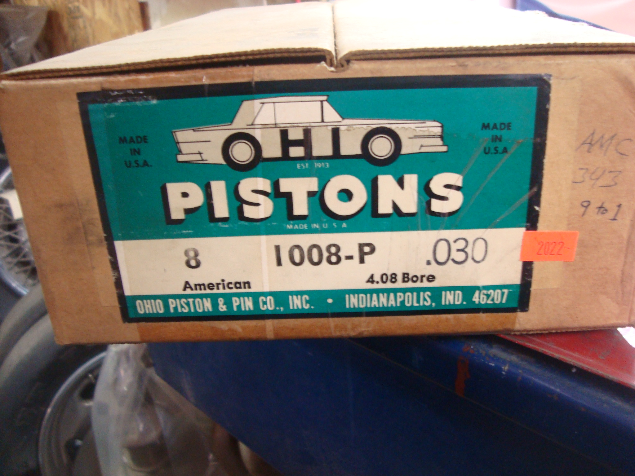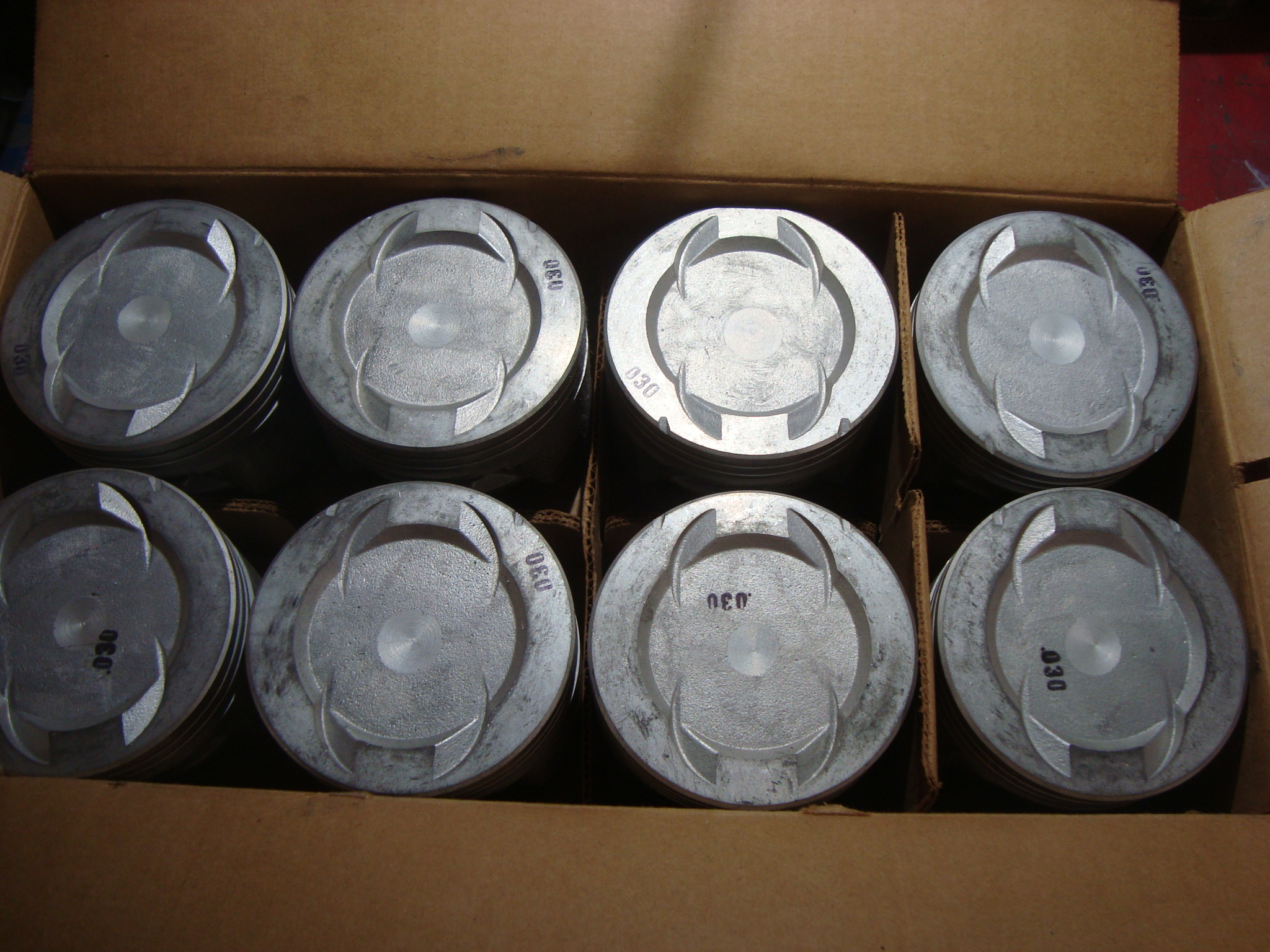 AMC AMX Javelin & others .030 over 343 OHIO pistons, NOS. Looks like shelf wear from just being moved around for years.