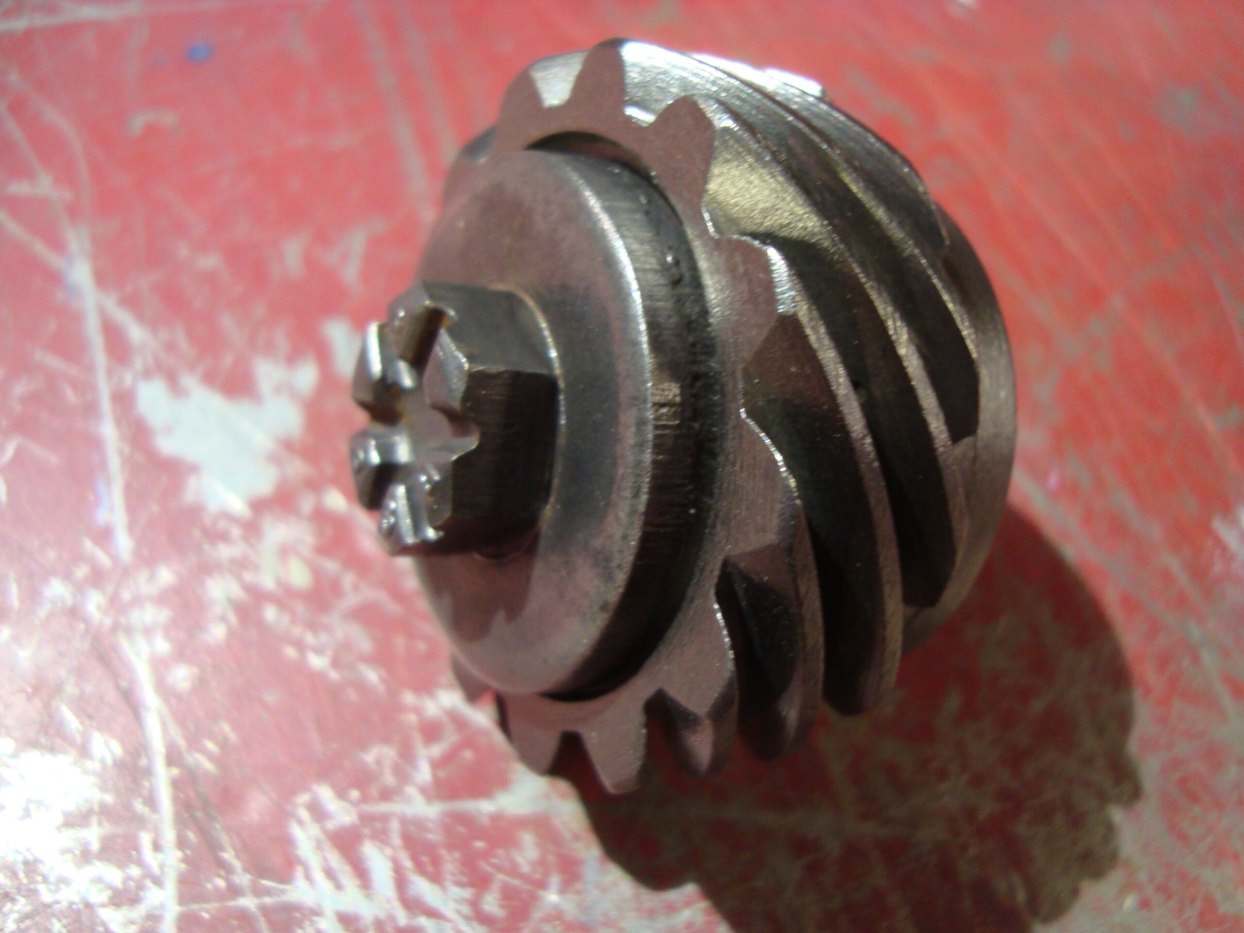 AMC AMX Javelin & others V-8 cam distributor drive gear, washer, & bolt. I would way rather use a seasoned, properly hardened to factory tolerances, and oil holes drilled in the factory locations then some of the after market parts that have marketed through the years. An AMC used, but proven part.