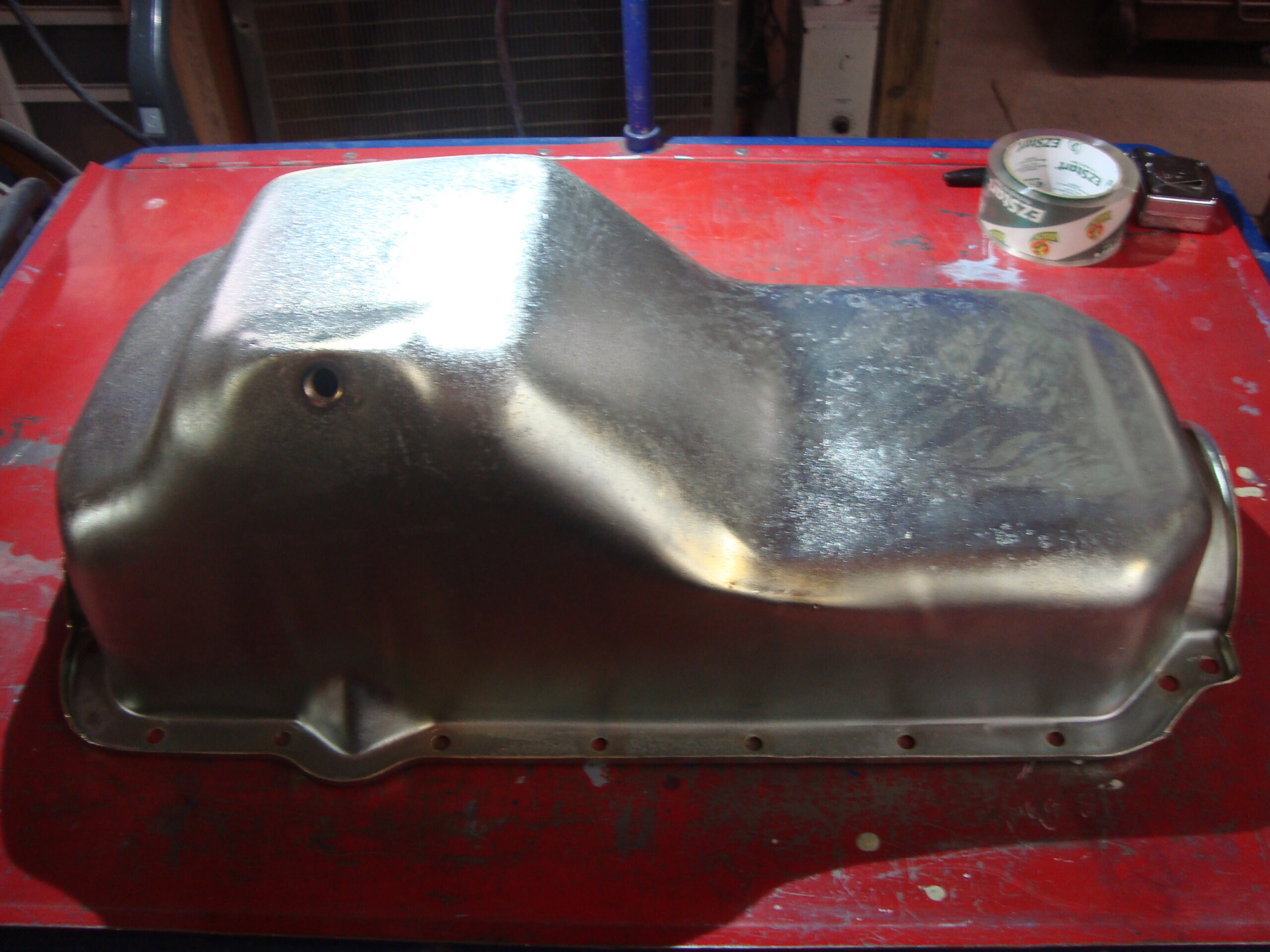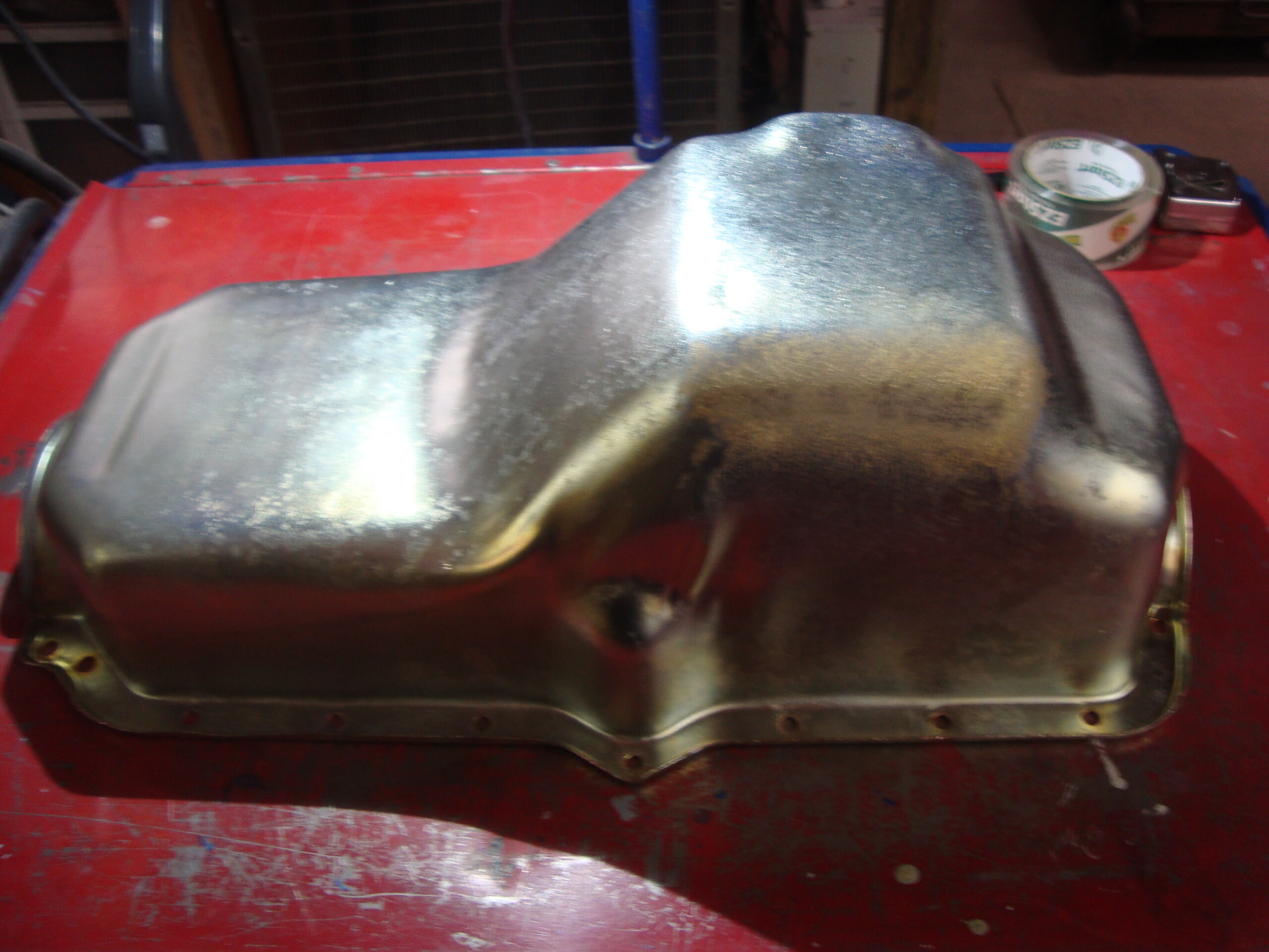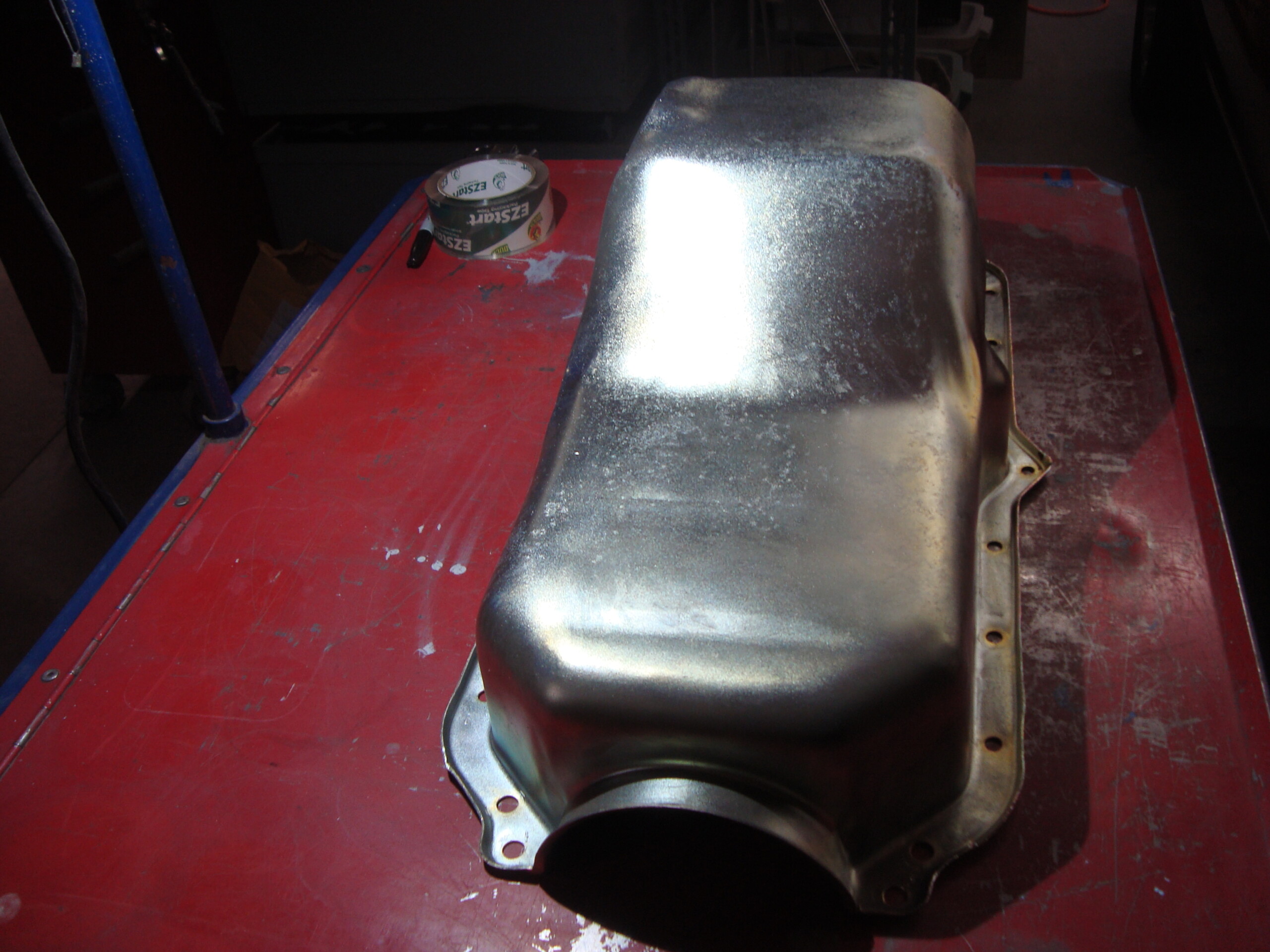 AMC car V-8 side drain oil pan. AMX Javelin & others. Blasted, E.Nickel, Yellow Zinced for preserving well in storage. This pan is NOT to be used on Jeeps that need the clearance for the suspension travel of the front dif. That is why it is advertised for cars. Some Jeeps can use this, but not all. Make sure of your application! All sales are final!