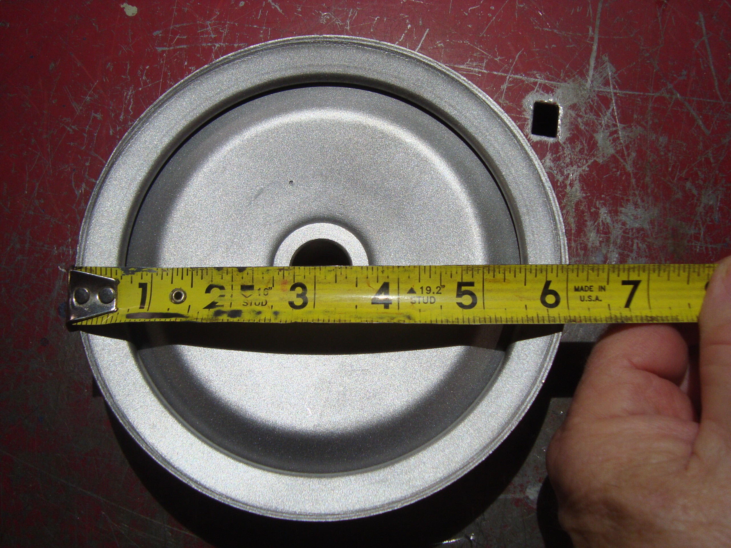 AMC Javelin AMX Jeep & others power steering pump pulley. Late model. shaft size is approximately 3/4″, OD is about 6&1/8.