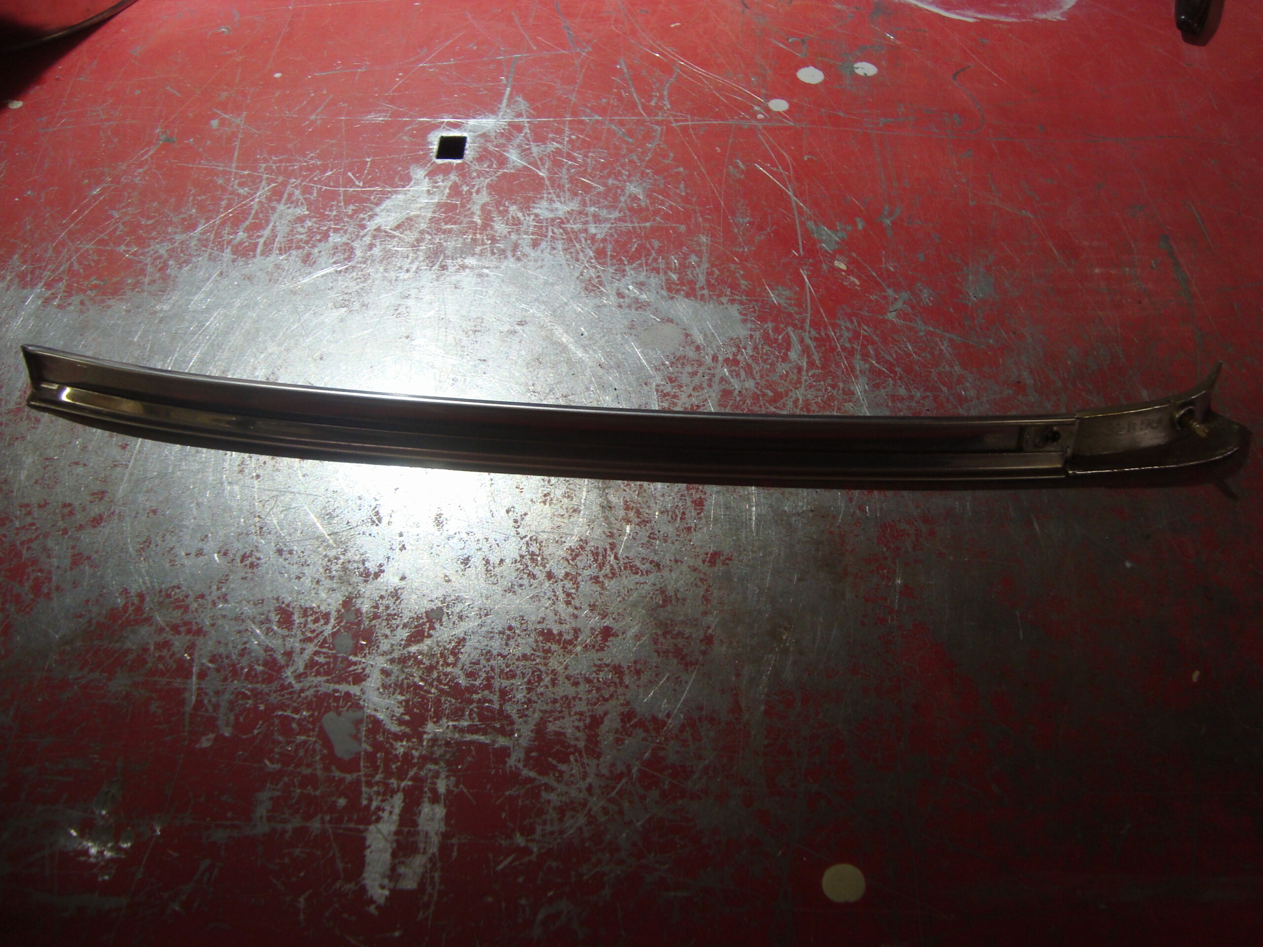 AMC Javelin AMX right under quarter glass trim 1971 through 1974. It has one small dimple in it. It looks like some one pried on it at the door jam end. See pic’s. Driver quality, could be made into show quality.