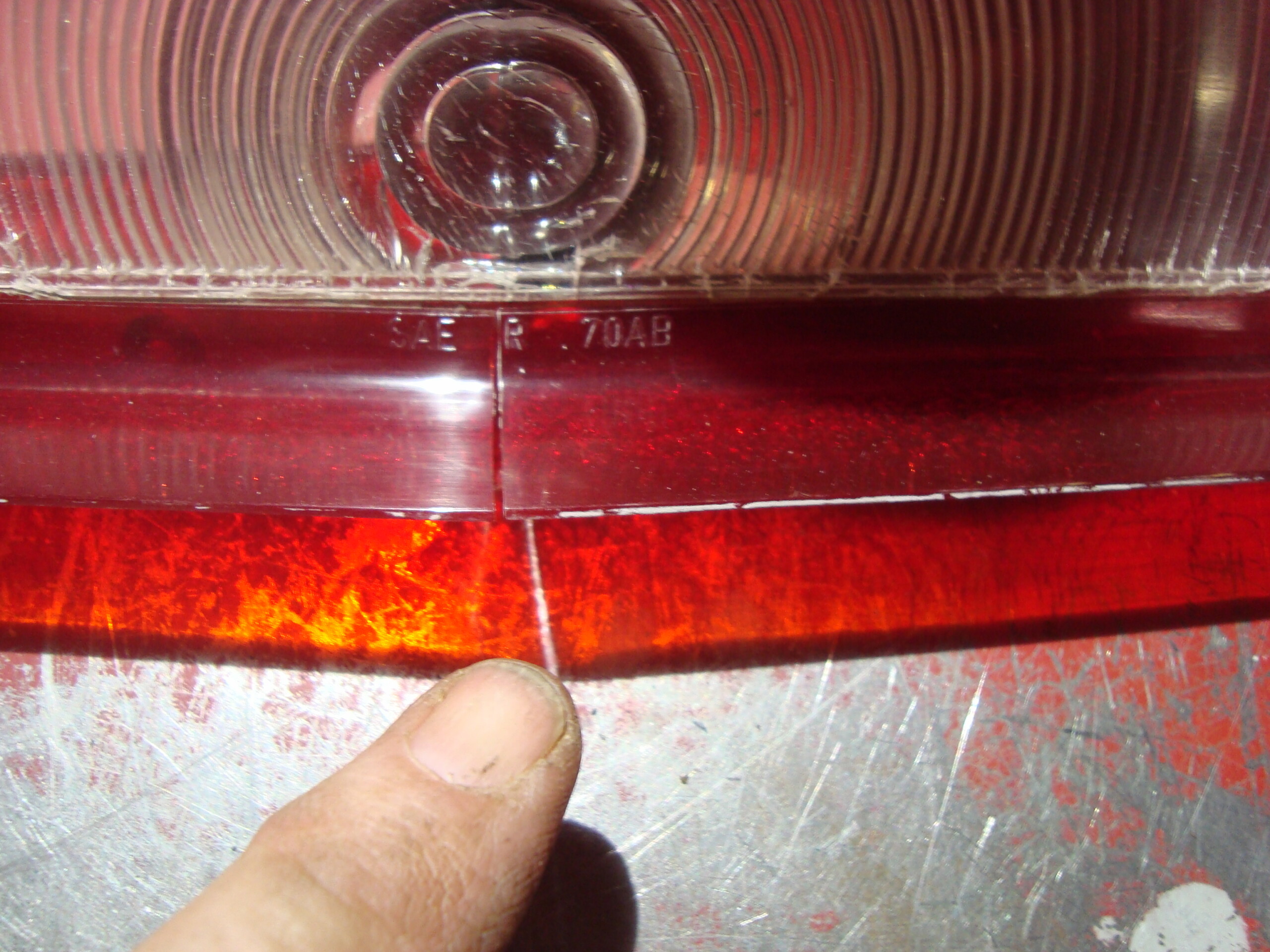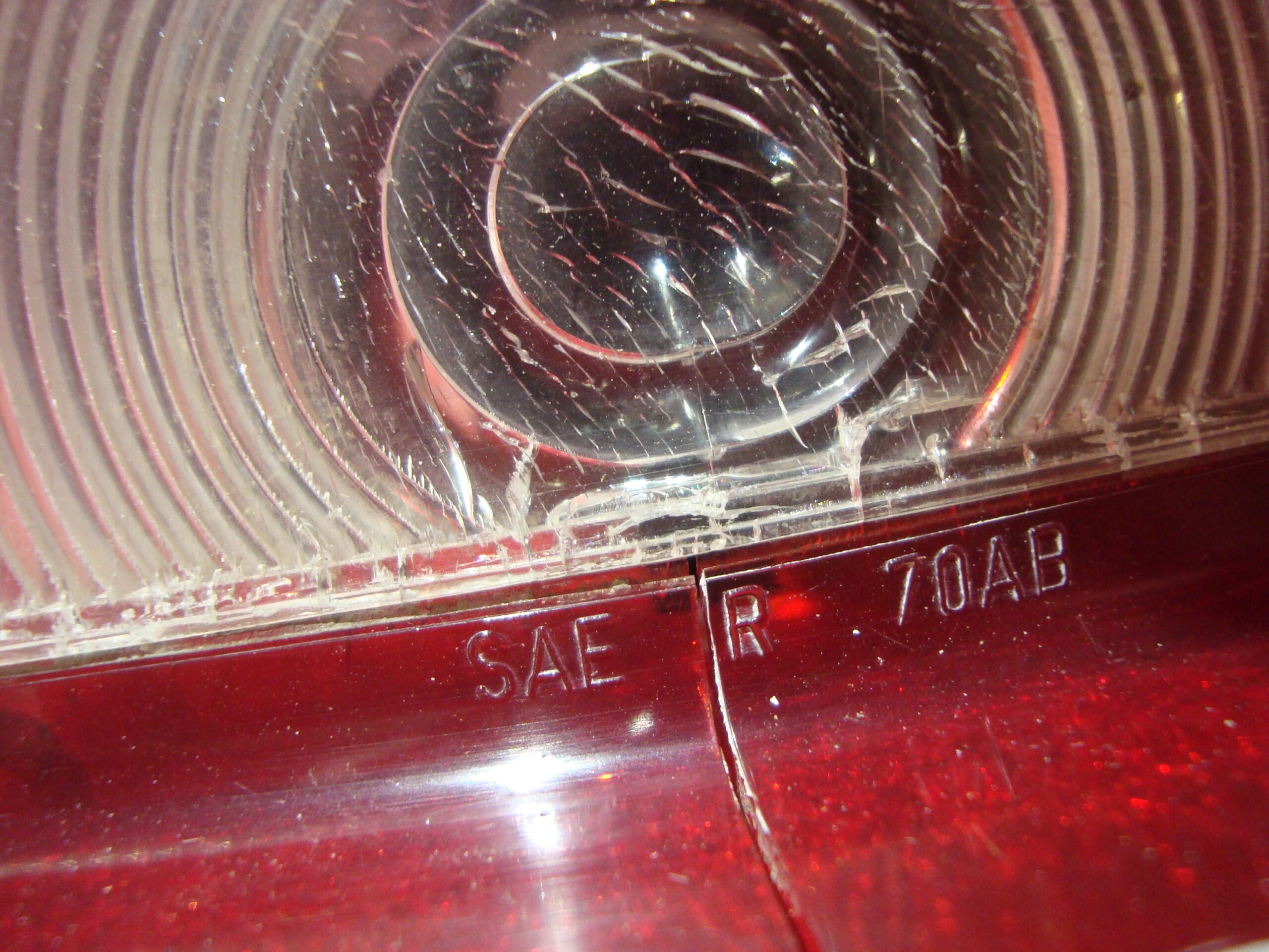 AMC Javelin reverse light lens. It has a crack at the bottom and small stress cracks all over. Driver quality, see pic’s.