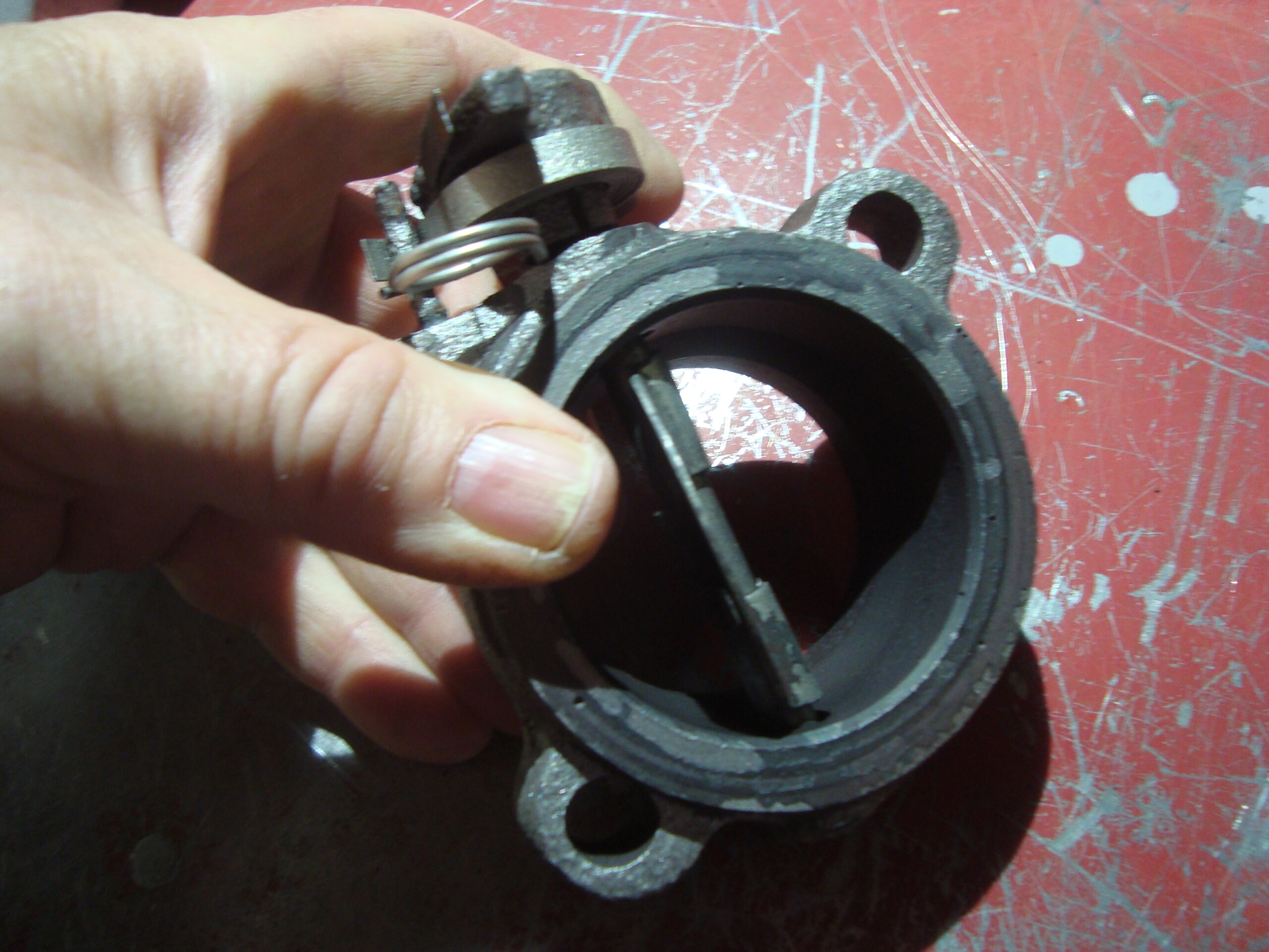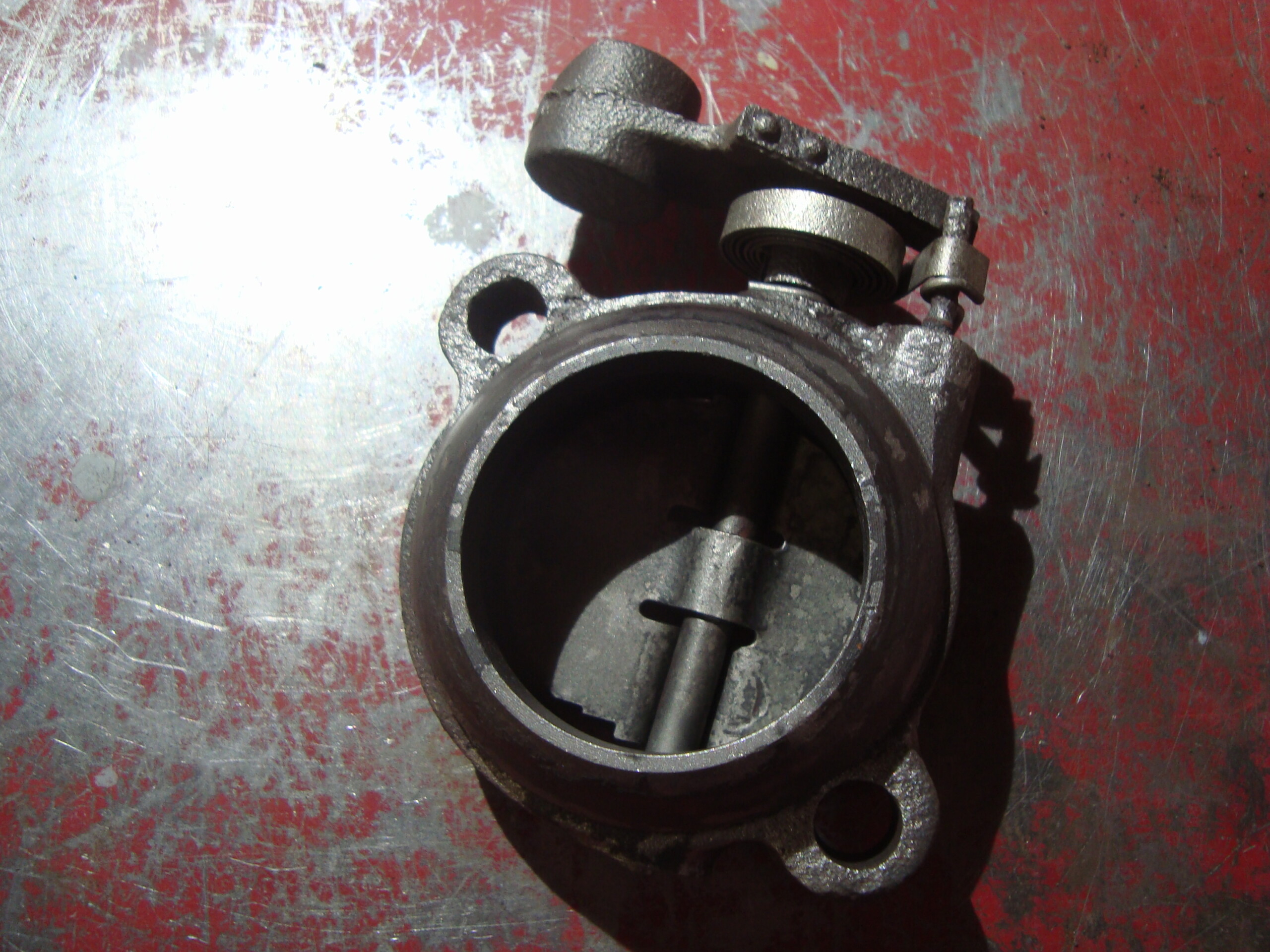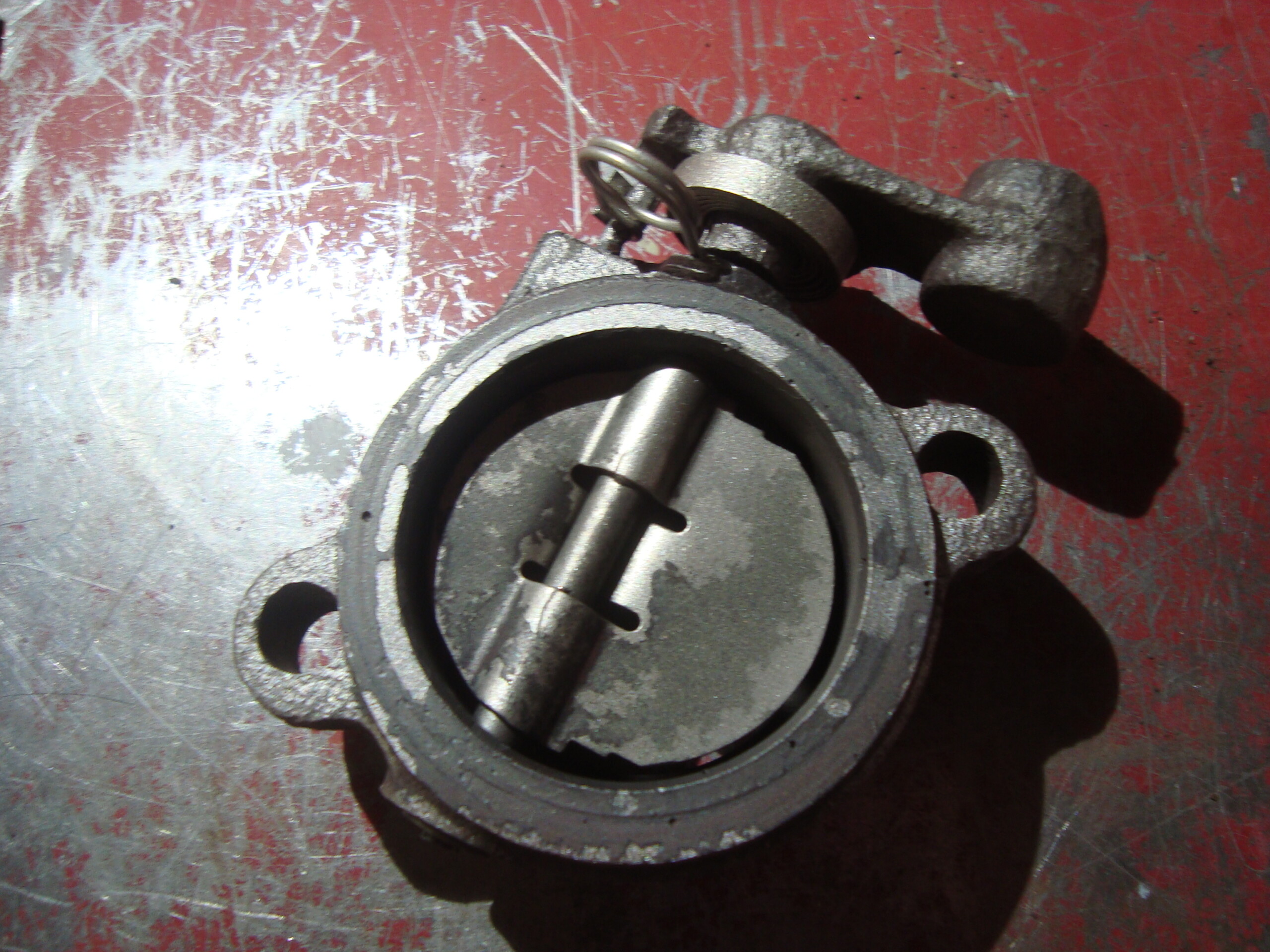AMC Jeep & others 360, 401 exhaust heat riser butterfly. This is the late model with the built in doughnut, and was rusty.